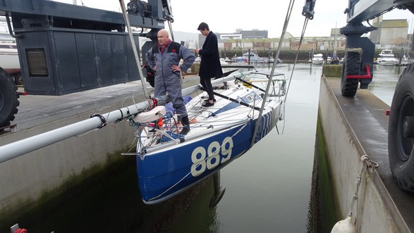 Après 3 mois de travaux, le travail a enfin payé et le bateau a rejoint son emplacement au ponton du Vendée Globe au sein du pôle Mini le 25 Février.