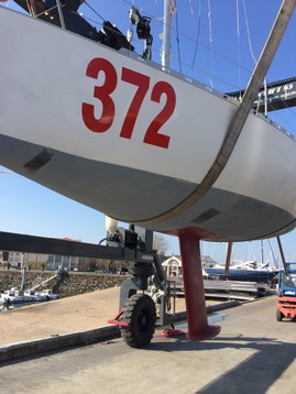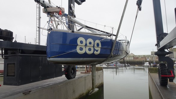 Le 27 Décembre, BIDOUM, le nouveau nom du bateau 889 est sorti de l'eau pour une maintenance hivernale. Un gros chantier est à prévoir du coté du déstickage de la coque. Quelques petits travaux d'électricité seront également envisagés pour installer des petits feux latéraux pour être conforme à la jauge.