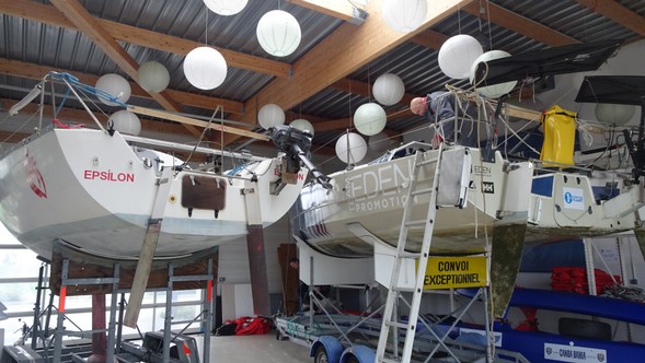 Enfin, des outriggers seront installés afin de soulager le bout dehors lors des grosses descentes de spi. Le bateau est maintenant au chaud dans le hangar du SNS (Sports Nautiques Sablais) et durant ce mois de Janvier 2020, nombreux de ces travaux seront effectués par mon préparateur technique Baptiste Briquet.