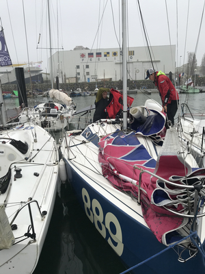 Malgré la Covid-19 et le confinement du début d'année, nous avons réussi à faire un entrainement puis nous sommes montés à Lorient pour la 1ère régate: La Plastimo 2021 du 15 au 18 Avril. Une course de 300 miles en double. Nous avons pris un bon départ sous 30 noeuds de vent au portant. Durant toute la première partie nous sommes restés au contact du peloton et avons viré à l'île d'Yeu vers 6 heures du matin pour remonter à Lorient. Nous sommes arrivés en 33ème position sur les 69 bateaux inscrits. La course était particulièrement difficile, les températures étauient très fraiches, notamment en nuit.